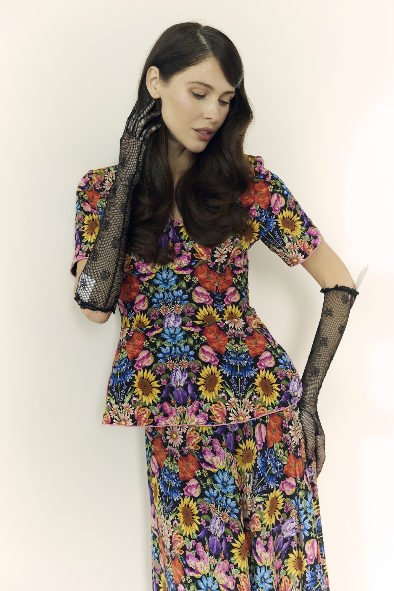 Стеганная блузка и юбка из шелка
